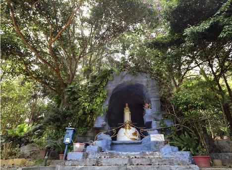 Berjarak sekitar 20 menit perjalanan dari pantai pasir putih, Pantai Trikora, objek wisata budaya di Pulau Bintan selanjutnya adalah Grotto Santa Maria, sebuah tempat ziarah yang tenang bagi umat Nasrani. Dari pintu masuk, pengunjung sudah disuguhkan dengan diorama “Jalan Salib” yang menggambarkan kisah penyaliban Yesus Kristus dalam bentuk patung batu kapur. Disebut Grotto Santa Maria, karena memang terdapat satu patung Bunda Perawan Maria dengan berat sekitar 250 kg.