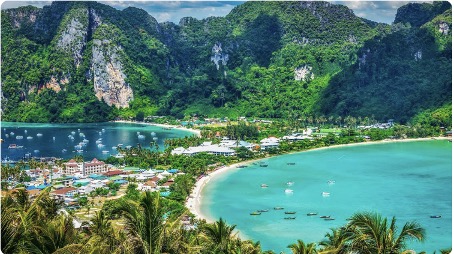 Kepulauan Phi Phi adalah destinasi terkenal yang menjadi lokasi syuting film “The Beach.” Disini kamu dapat melihat keindahan alam dengan snorkeling di Maya Bay dan menikmati pemandangan laut dari Phi Phi Viewpoint. Untuk menuju ke Phi Phi Island ini kamu cukup menaiki kapal feri dari Krabi atau Phuket